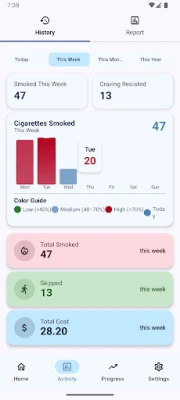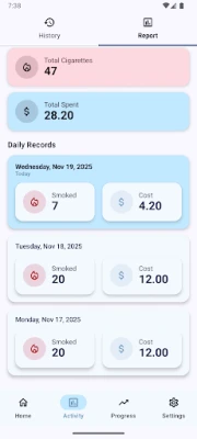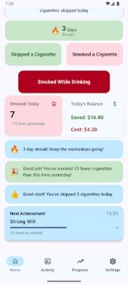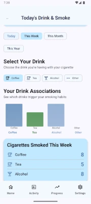 A Cigarettakövető segít megérteni és kézbe venni dohányzási szokásait, legyen szó leszokásról, csökkentésről vagy csak tudatosságról. Fokozatos fejlődéssel, nyomás nélkül alakíthat ki füstmentes életet. Kövesse napi adagját, takarítson meg pénzt és javítsa egészségét.