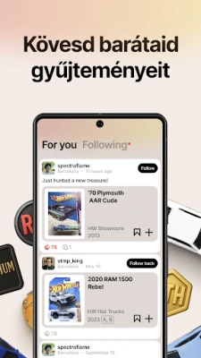 A DieCarz azonban több, mint egy egyszerű gyűjteménykezelő eszköz; egy élő, lüktető közösségi tér. Lépjen kapcsolatba hasonló gondolkodású gyűjtőkkel, ossza meg szenvedélyét, és vegyen részt izgalmas beszélgetésekben. Valós idejű értesítések révén azonnal értesülhet arról, ha barátai vagy a közösség új darabokat ad hozzá a kollekciójához, vagy ha valaki kedveli az Ön által feltöltött autókat, illetve követi profilját. Ez a platform ideális mindenkinek, aki szereti a Hot Wheels modelleket és a die-cast autókat, és a hobbiját a következő szintre szeretné emelni. Kezdje el ma álmai gyűjteményének építését!