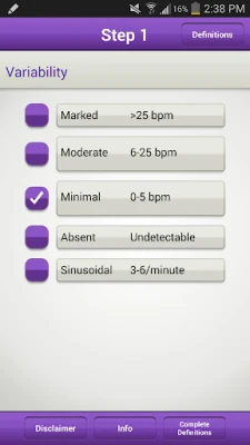 Az alkalmazás nem csupán osztályoz, hanem a Parer és Ikeda által vázolt, alapvető kezelési javaslatokat is megadja. Ezek az ajánlások kiterjednek arra, hogy szükséges-e a szülész jelenléte az ágynál, milyen további személyzetnek kell elérhetőnek lennie, vagy indokolt-e a beteg műtőbe szállítása. Emellett a Kék, Sárga és Narancssárga nyomvonalak esetén konzervatív kezelési technikákra is emlékeztet, mint például az anya pozíciójának változtatása, az oxitocin csökkentése vagy az amnioninfúzió. Fontos megjegyezni, hogy bár a **FHR 5-tier** a legelismertebb hatóságoktól származó információkat gyűjti össze, és a NICHD kategóriákat (I, II, III) is megjeleníti, kizárólag licencelt egészségügyi szakemberek referenciaeszközeként használható. Nem helyettesíti a szakorvos független klinikai ítélőképességét, és semmilyen orvosi döntést nem szabad kizárólag az alkalmazásból származó információkra alapozni.